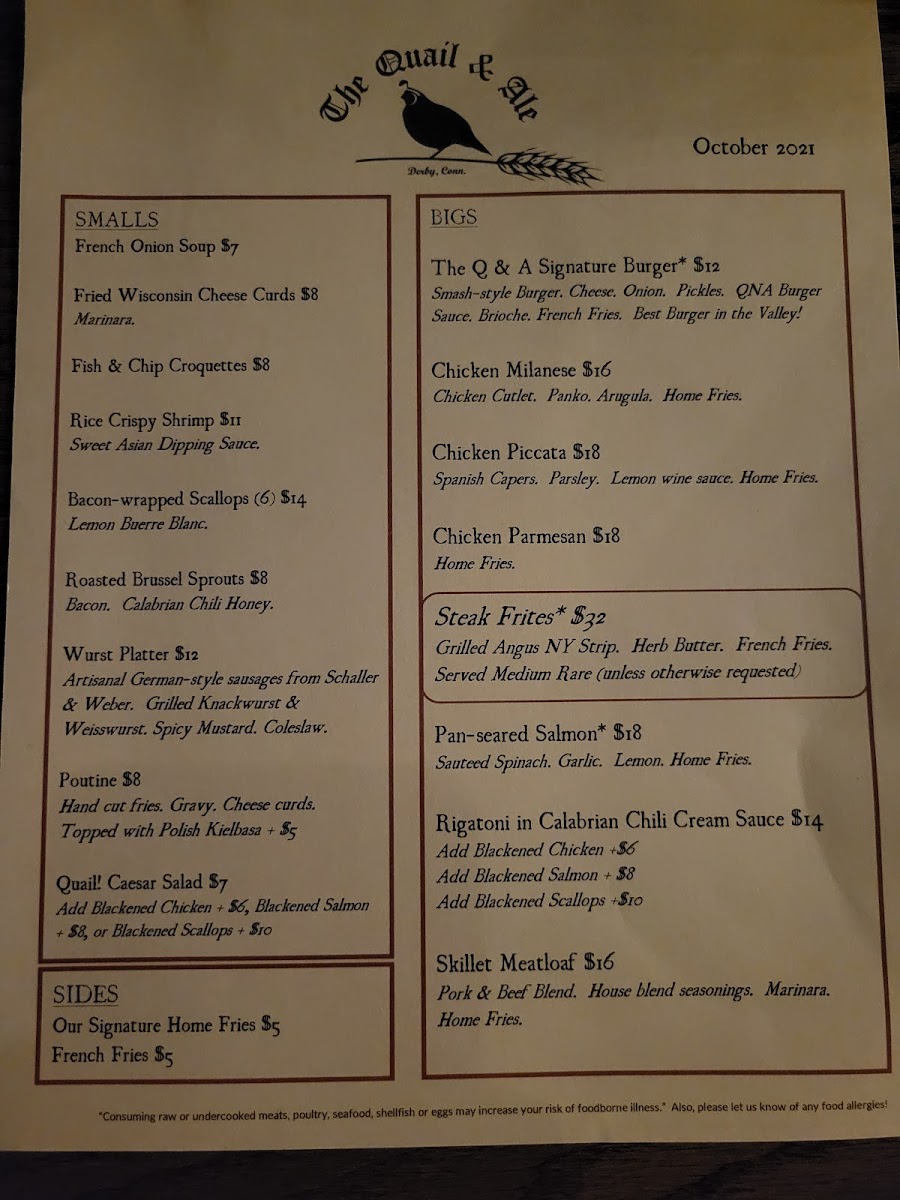 Welcome to The Quail & Ale Neighborhood Pub, a cozy gem located at 328 Derby Ave, Derby, CT. This charming spot harmoniously blends warmth and sophistication, making it perfect for any occasion—be it a casual night out or a special celebration.